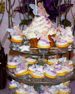 Super Sweet fairy cupcake tower from customer Heather: featuring edible Fairies and custom large edible Fairy at the top: available at SugarRobot.Etsy.com